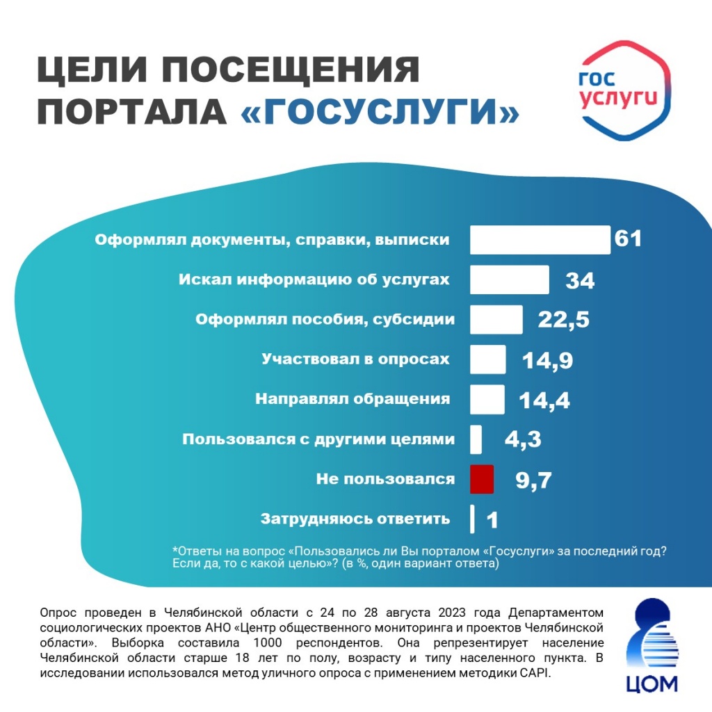 «Постоянное пользование порталом «Госуслуги» более характерно для женщин молодого и среднего возраста, работников бюджетной сферы, самозанятых, находящихся в декретном отпуске, южноуральцев с высокими доходами. Частое пользование «Госуслугами» больше распространено среди жителей Челябинска, молодых женщин, студентов», — комментируют аналитики ЦОМ после анализа ответов южноуральцев.